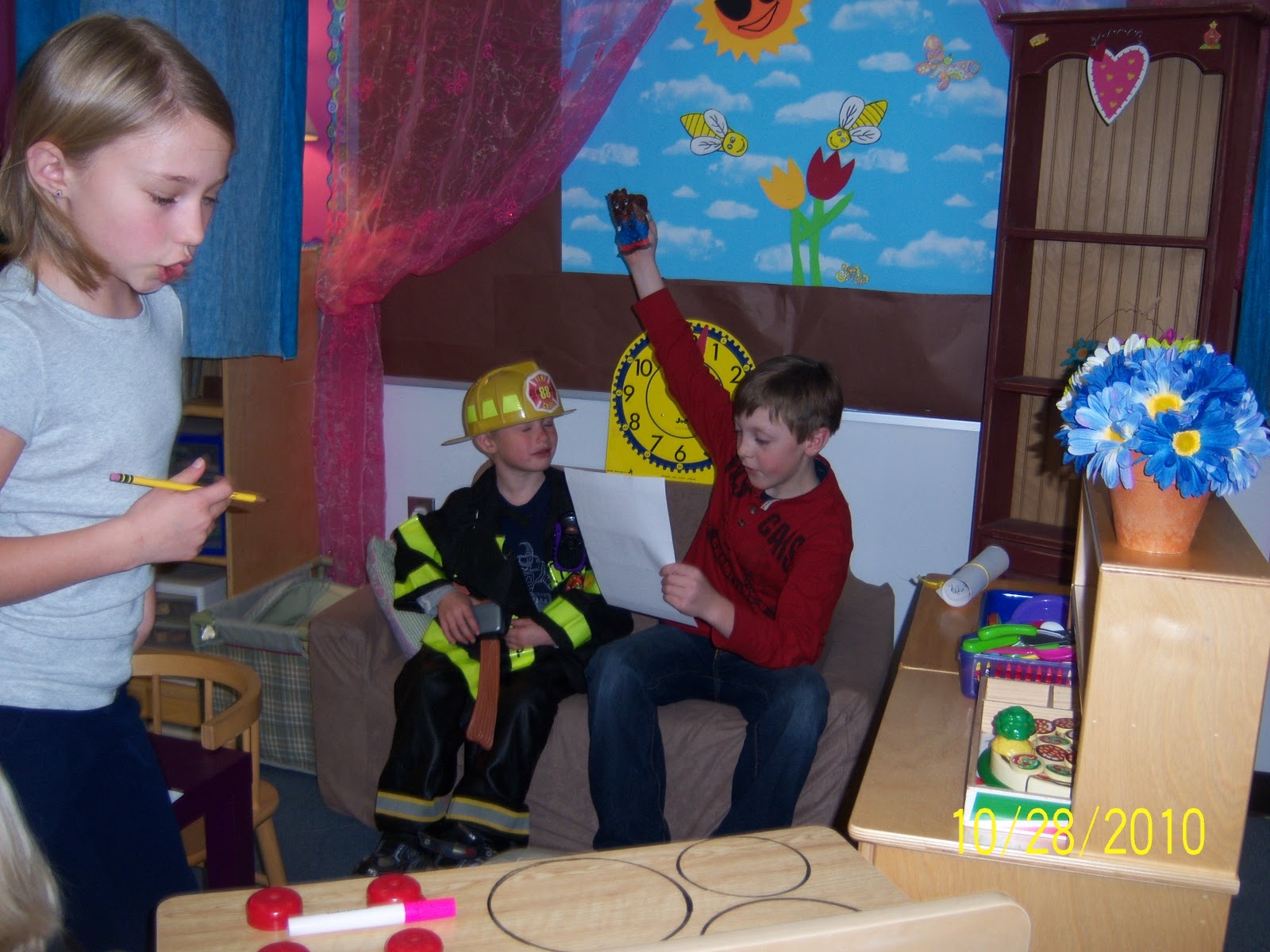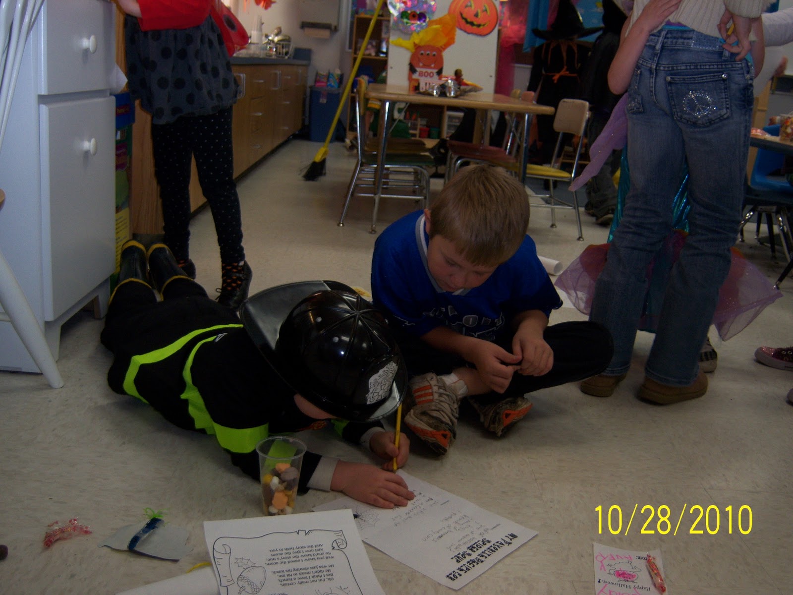 What a busy one! Check out the photos taken while we were with our kindergarten reading buddies. So cute! We read a fun poem and helped write some recipes for "Spider Soup."